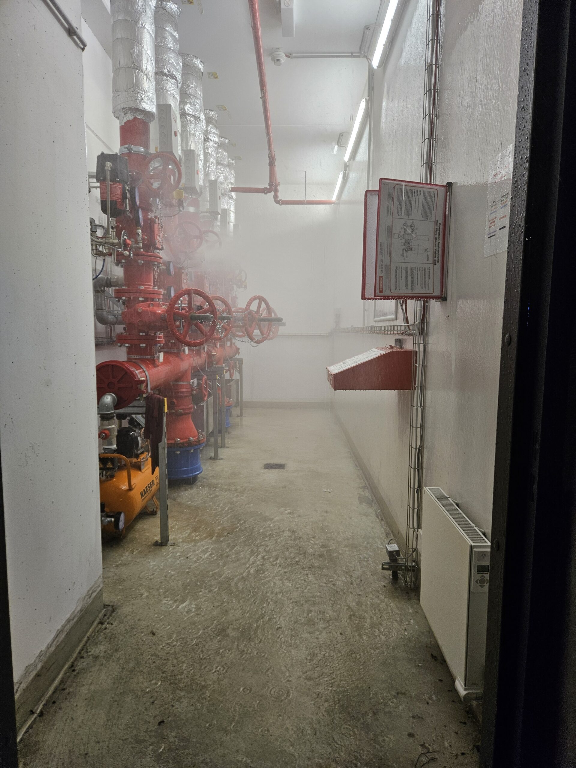 Zum 1. Einsatz des Samstages wurden wir in das Gewerbegebiet „Inno-Park“ ins Logistikzentrum der PUMA alarmiert. Eine Meldegruppe hatte ausgelöst. Die BMA wurde kontrolliert und es konnte keine Feststellung getroffen werden. Nach Rückstellung der Anlage lief ein zweiter Alarm auf, diesmal eine andere Meldegruppe. Bei der Kontrolle konnte ein massiver Wasseraustritt aus einer Hauptleitung in der Sprinkleranlage festgestellt werden. Nachdem der Zuständige Techniker eingetroffen war, stellte dieser den Wasserzulauf ab und übernahm die Zuständigkeit.