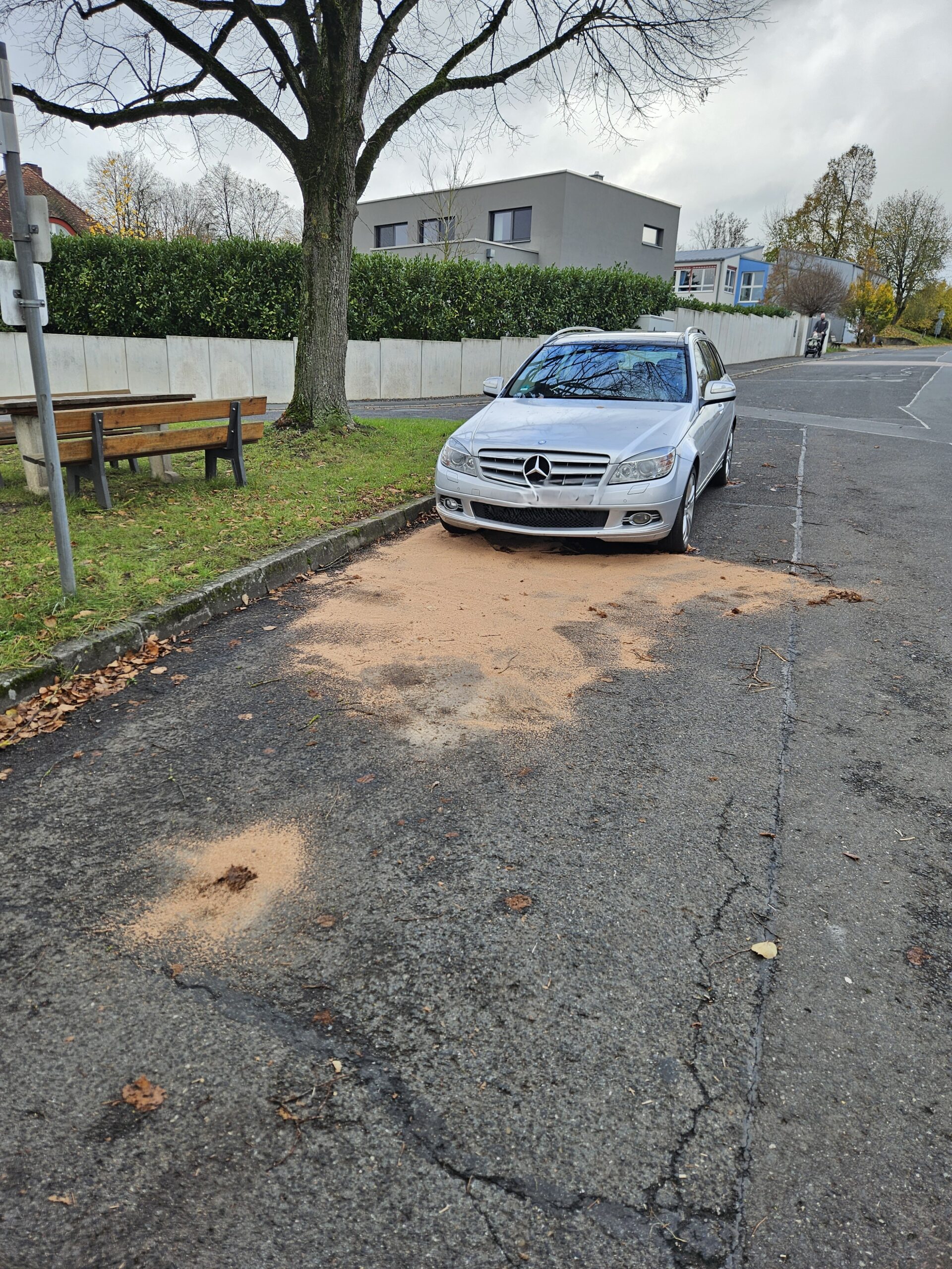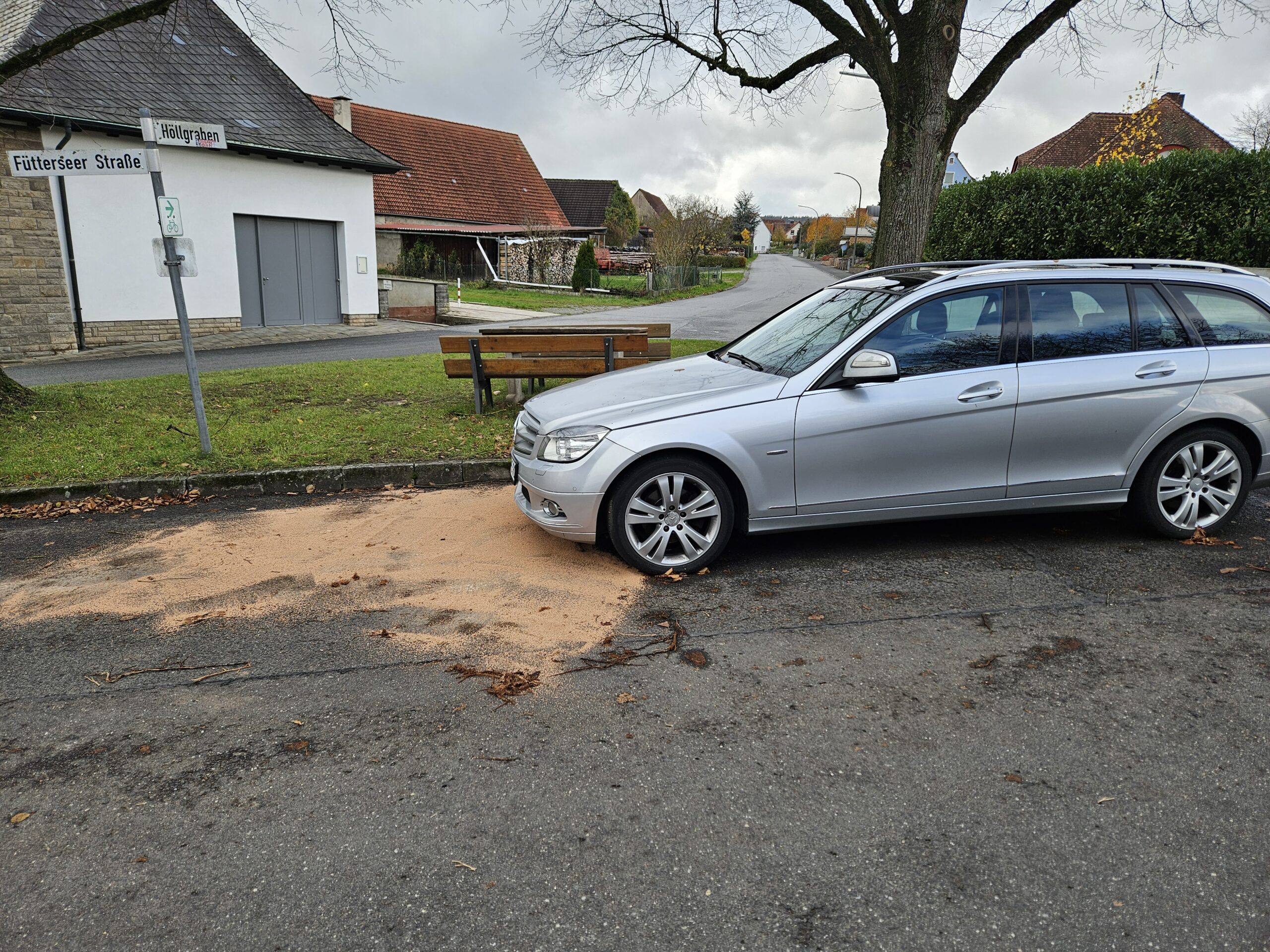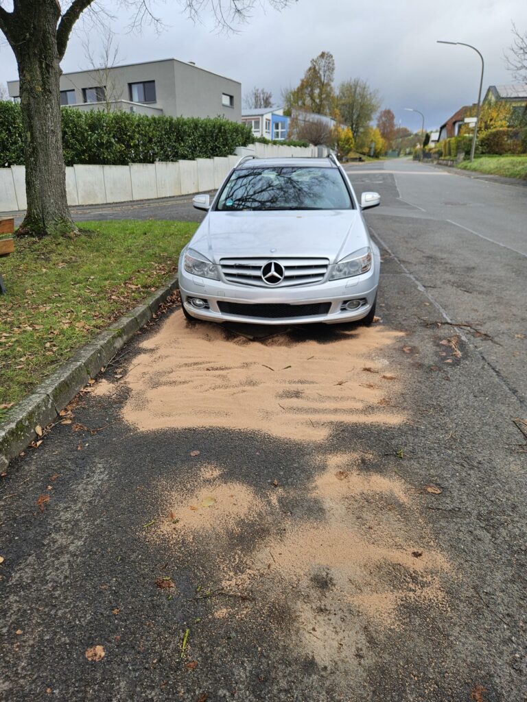 Aus einem parkenden Fahrzeug traten Betriebsmittel aus und verteilten sich durch den Regen im Straßenentwässerungsablauf. Um eine Ausbreitung zu verhindern wurden die Betriebsmittel mit entsprechendem Bindemittel abgestreut und einer fachgerechten Entsorgung zugeführt.