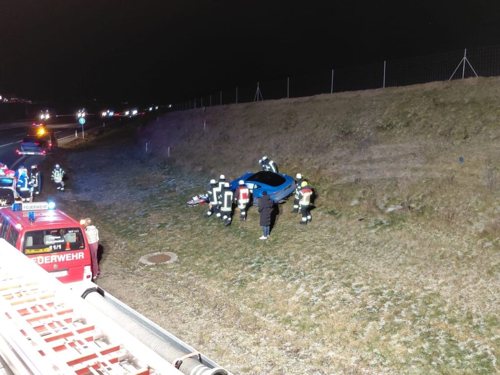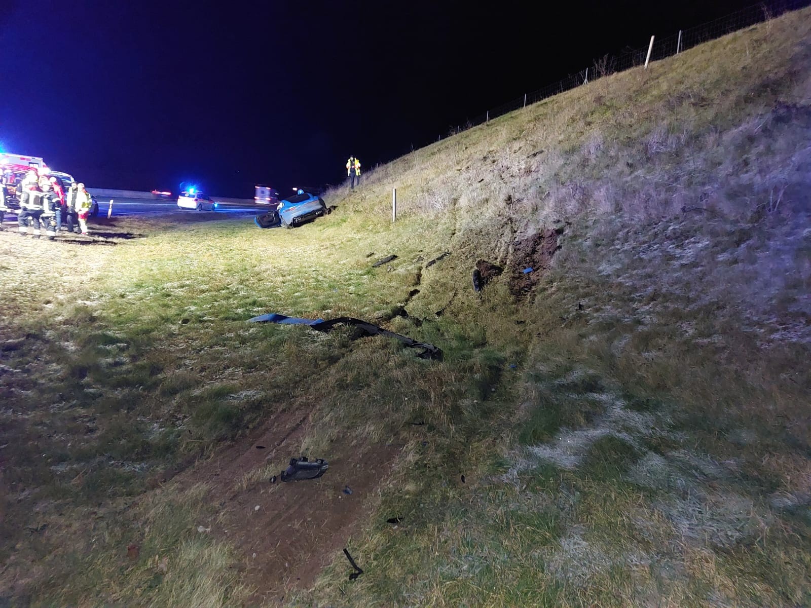Zu einer THL 1/RD 1, Unterstützung Rettungsdienst, wurden wir auf die BAB A3, Anschlussstelle Geiselwind, alarmiert. Ein Pkw war aus ungeklärter Ursache von der Fahrbahn abgekommen und im Bereich der angrenzenden Böschung zum Stillstand gekommen. Das Fahrzeug befand sich in instabiler Lage. Eine Beifahrerin befand sich noch im Fahrzeug und klagte über starke Rückenschmerzen. Der Fahrer hatte das Fahrzeug bereits eigenständig verlassen und war unverletzt. Die Einsatzstelle wurde gegen den fließenden Verkehr abgesichert, die Auffahrt gesperrt und die Einsatzstelle ausgeleuchtet. Aufgrund des Verdachts auf ein Halswirbelsäulen-Syndrom (HWS) wurde in enger Absprache mit dem Rettungsdienst eine schonende technische Rettung durchgeführt. Hierbei wurde die Patientin achsengerecht aus dem Fahrzeug befreit und an den Rettungsdienst übergeben. Die Einsatzstelle wurde nach Abschluss der Reinigungsarbeiten an die Polizei übergeben. Anschließend konnte die Rückfahrt angetreten werden.